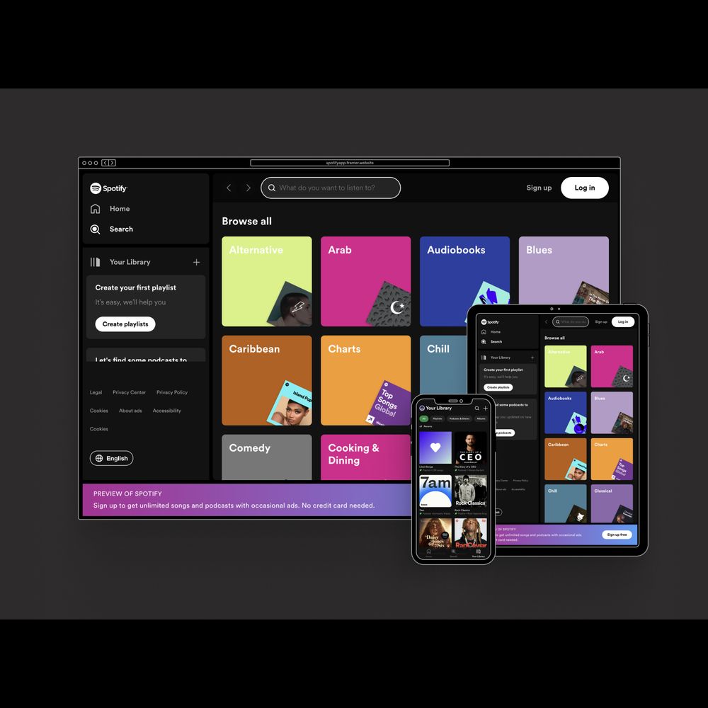 This Framer template is a rebuild of Spotify, one of the most awarded and highly praised apps in the world for its design. It follows key design principles such as simplicity, consistency, and layout. Learn and incorporate Spotify's world-renowned design in your next project by remixing this template. Features: Interaction: Hover effects on all buttons and linksResponsive layout: Desktop, laptop, tablet, and mobile versions, with the mobile version switching from the web app to the native app designText and colour styles: Pre-defined text styles and colour paletteContent management system (CMS): CMS powered categories on search page 4 pages: Home, Search, Library, Podcasts Preview: spotifyapp.framer.website If you have any questions or want to work together on another project, feel free to drop me a line at [email protected]. Disclaimer: This rebuild has no affiliation with Spotify.